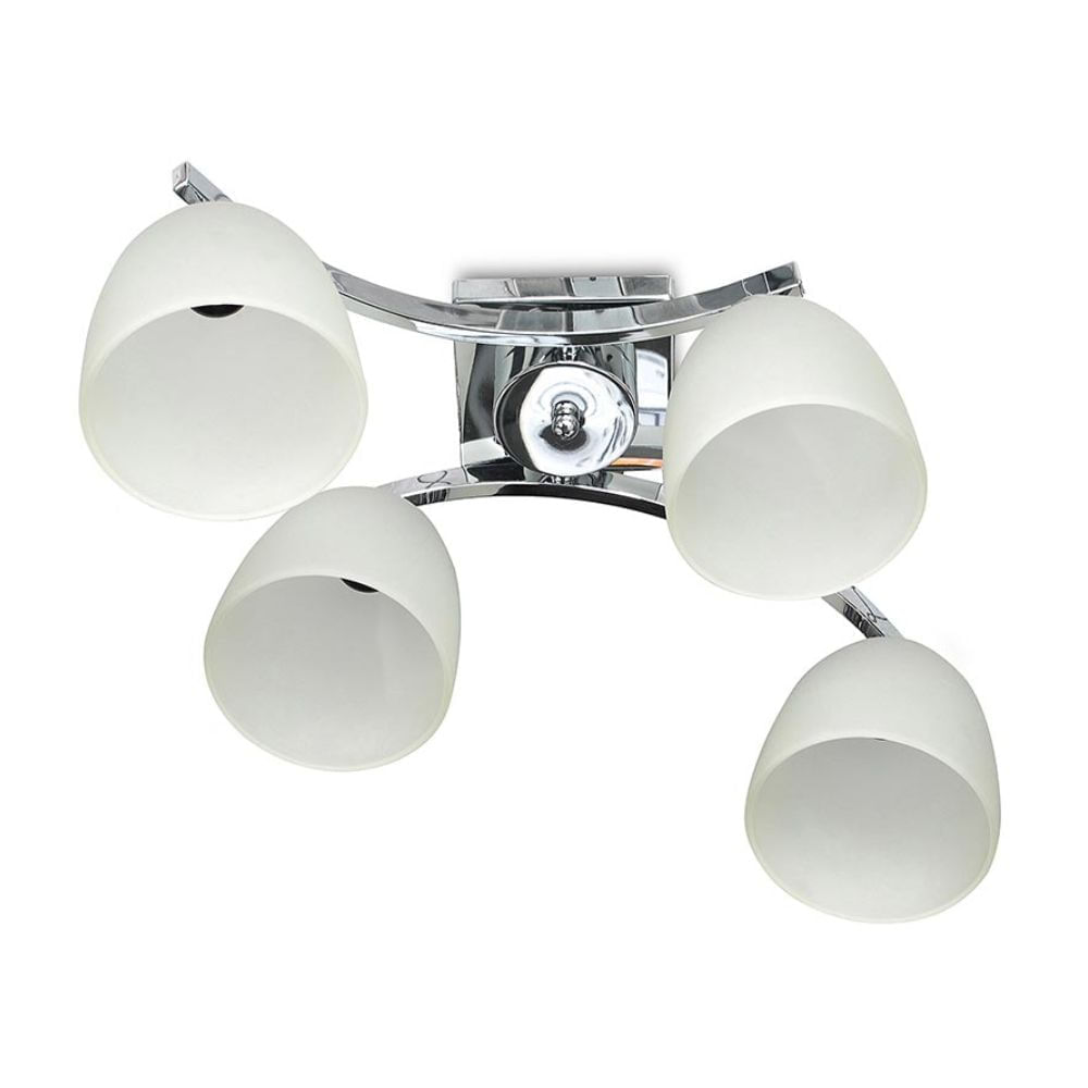 | Características | Lampara colgante metálico con acabado cromado, diseñado para interiores como sala, comedor o dormitorio, cuenta de 4 copas de vidrio con rosca E27 para la instalación del foco, |