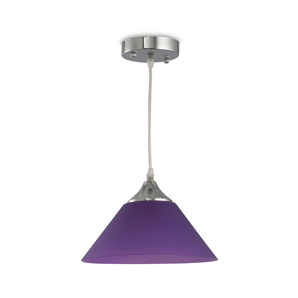 | Características | Lampara colgante con base de material aluminio, diseño acrílico en forma de cono decorativo, para interiores como sala, comedor y dormitorio, cuenta con soquet tipo E27 para la instalación del foco, además tiene cable para regular la altura de instalación. |