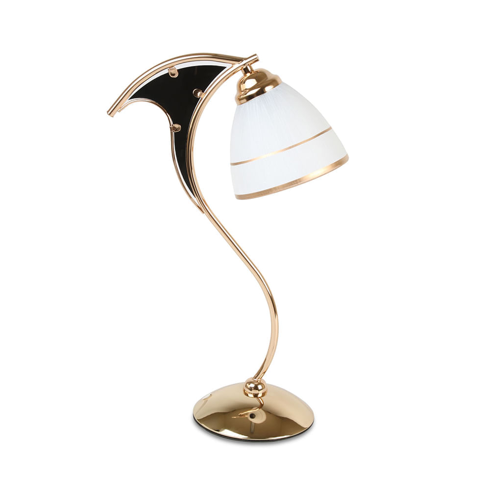 | Características | Lámpara de mesa con base metálico en acabado dorado, diseño decorativo, cuenta pantalla de vidrio en forma de copa, ideal para ambientes como dormitorios y sala, cuenta con entrada E27 para colocar el foco, además cuenta con cable y enchufe incorporado para la conexión. |
