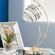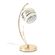 | Características | Lámpara de mesa con base metálica en acabadodorado, diseño decorativo y vidrio en forma de copa, cuenta con rosca E27 para colocar el foco, además tiene cable y enchufe incorporado para la conexión. |