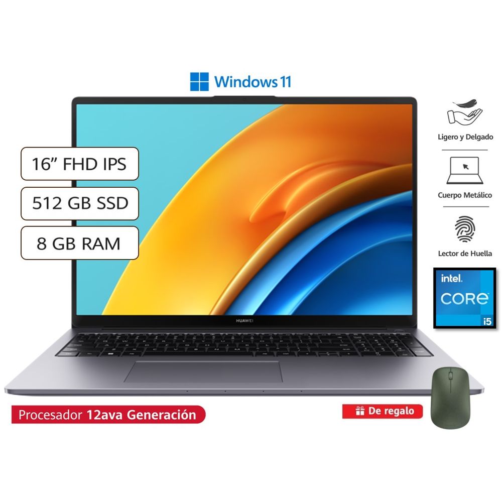 Laptop Huawei MateBook D16 16" FHD IPS i5-12450H 512GB SSD 8GB RAM Windows 11 Home Space Gray