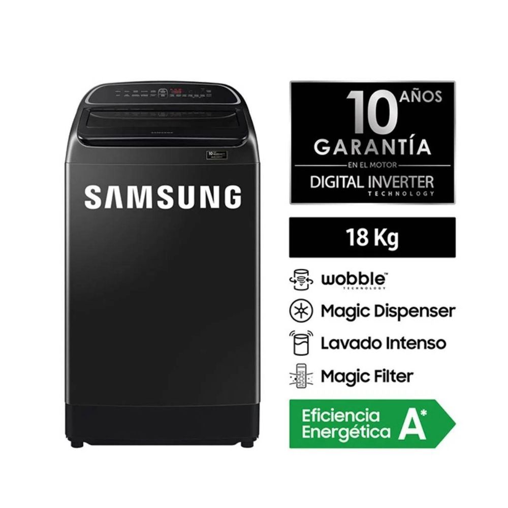 Lavadora Eco Digital Inverter con Wobble 18 Kg Samsung WA18T6260BV