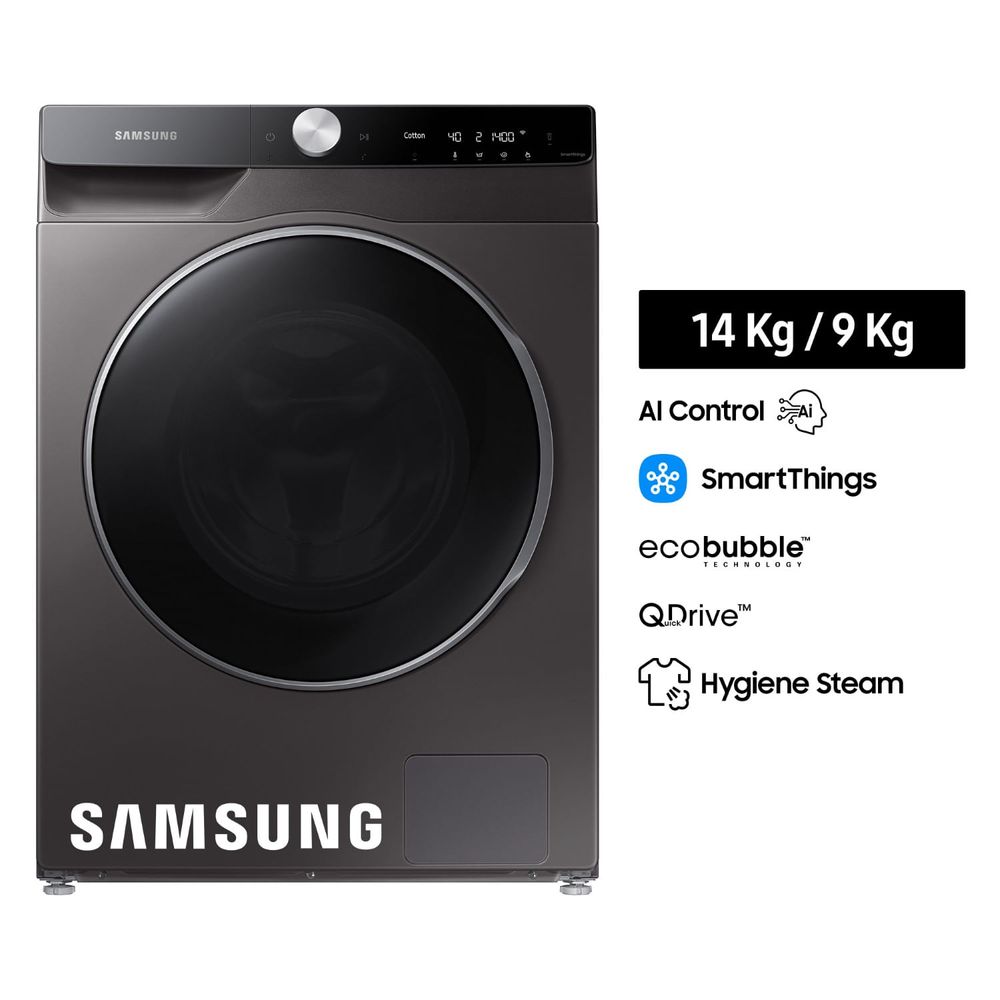 | Características | ECOBUBBLE™ La tecnología QuickDrive™ reduce el tiempo de lavado hasta un 50%. El potente ciclo Hygiene Steam libera vapor desde el fondo del tambor para cubrir cada prenda en la carga. Motor Digital Inverter La tecnología Air Wash desodoriza y desinfecta tus prendas, eliminando los olores desagradables y el 99,9% de las bacterias con solo aire caliente. Lavado Eco de Tambor El ciclo de lavado Bubble Soak ayuda a remover una amplia variedad de manchas difíciles causadas por vino, maquillaje, sangre o té |