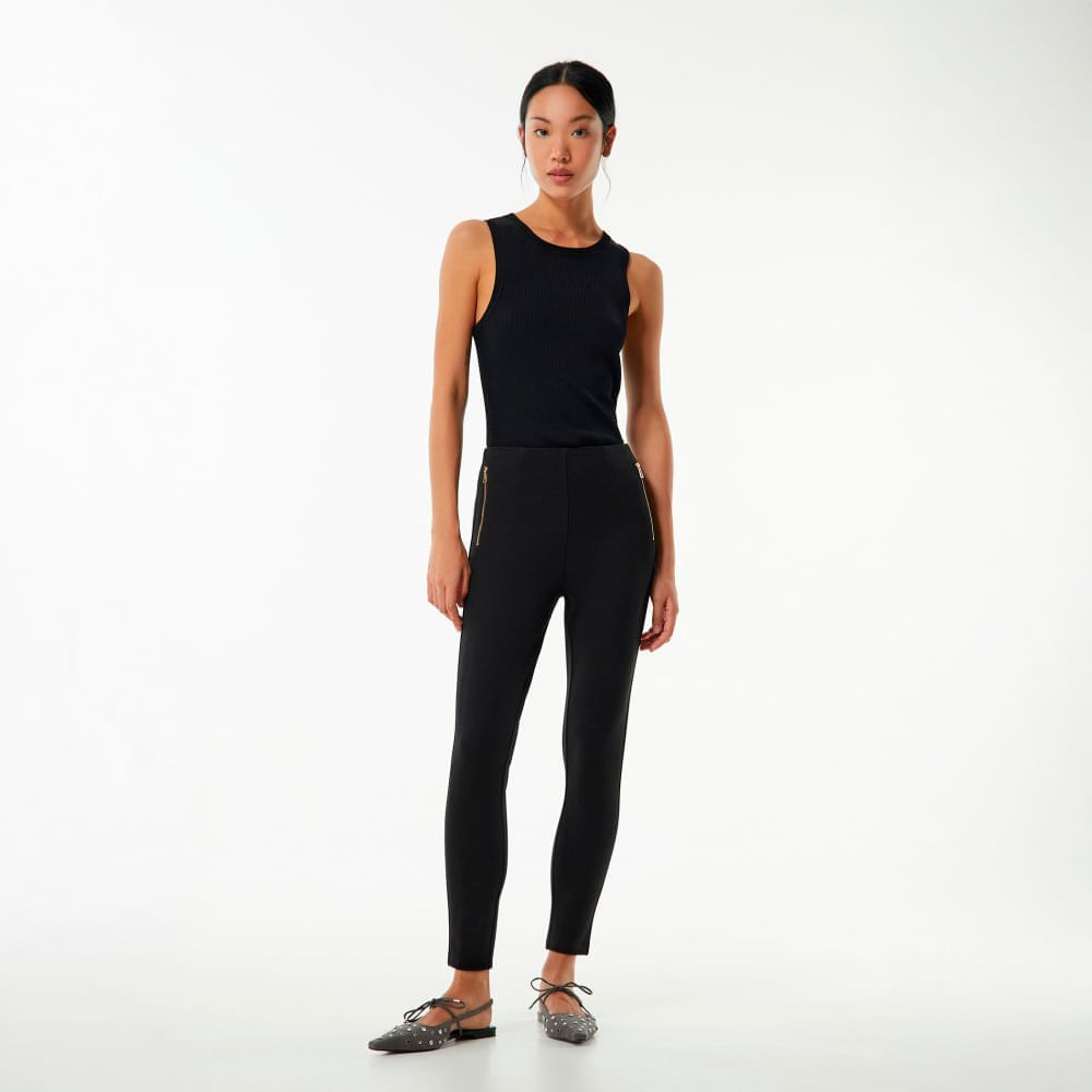Legging Cremallera Liso Sfera Mujer Negro