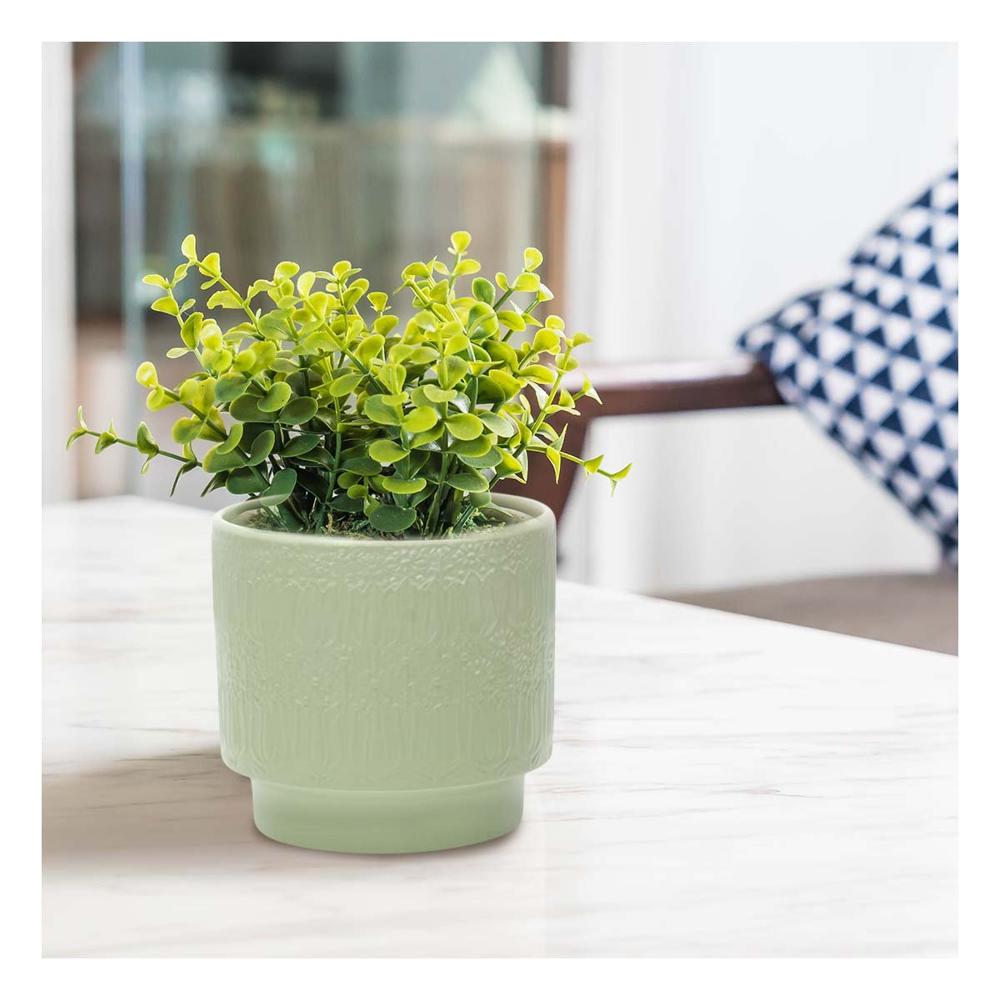Maceta Cilindro Ceramica 13x13cm Verde Claro Tulipanes Flores Para Decorar Casa Y+Papel Regalo