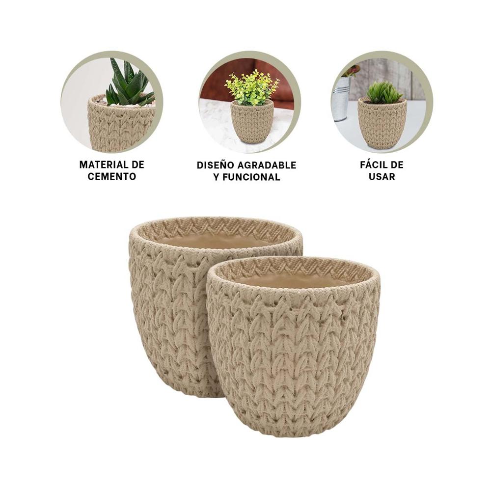 Macetero Redondo Curvo Decorativo Cemento 12x12cm Crema Tejido V Y+Ligas Regalo