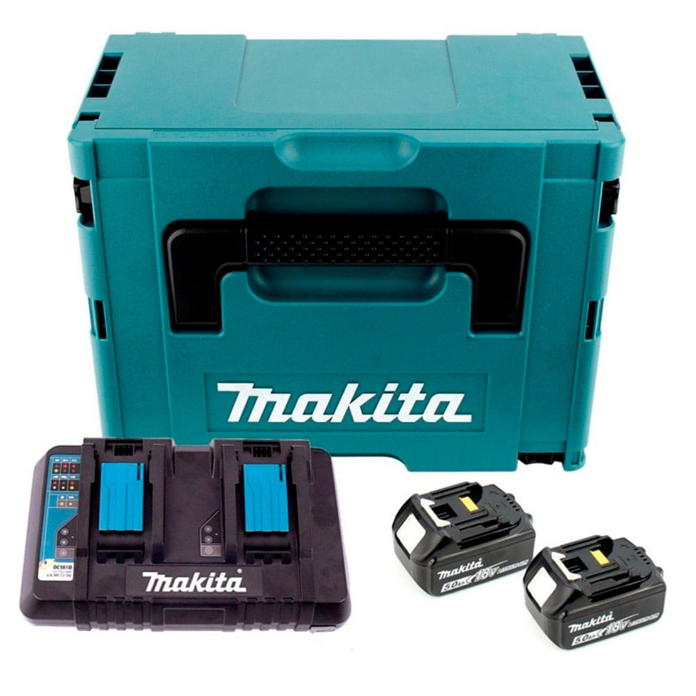 Set 2 Baterías Makita 18V LXT 5.0Ah + Cargador Doble MakPac