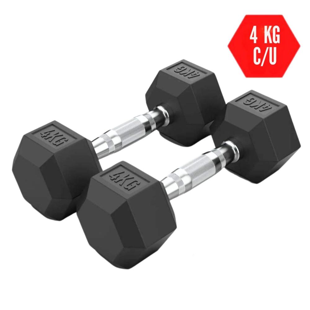 Mancuerna Hexagonal 4 kg Cromada de caucho X 2 - HEXA04
