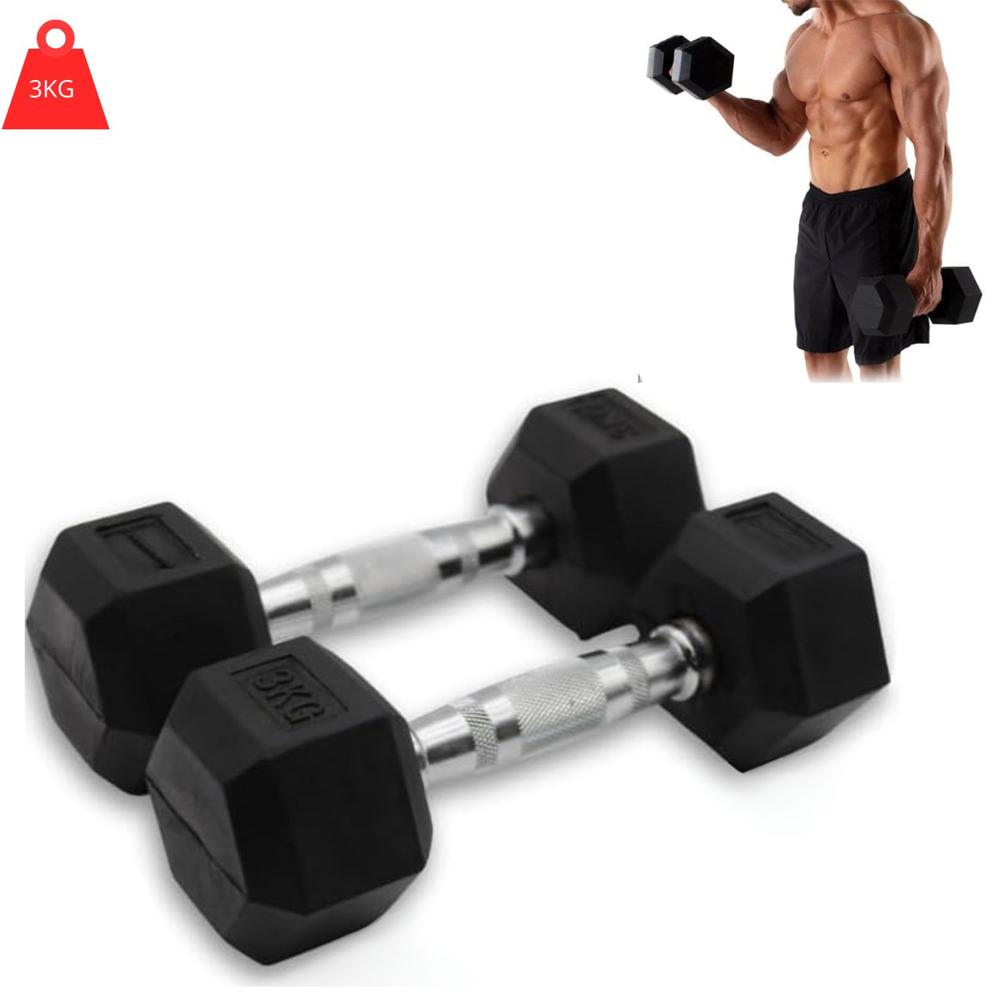 Mancuernas Hexagonales 3kg Pesas de Goma x2 - U240