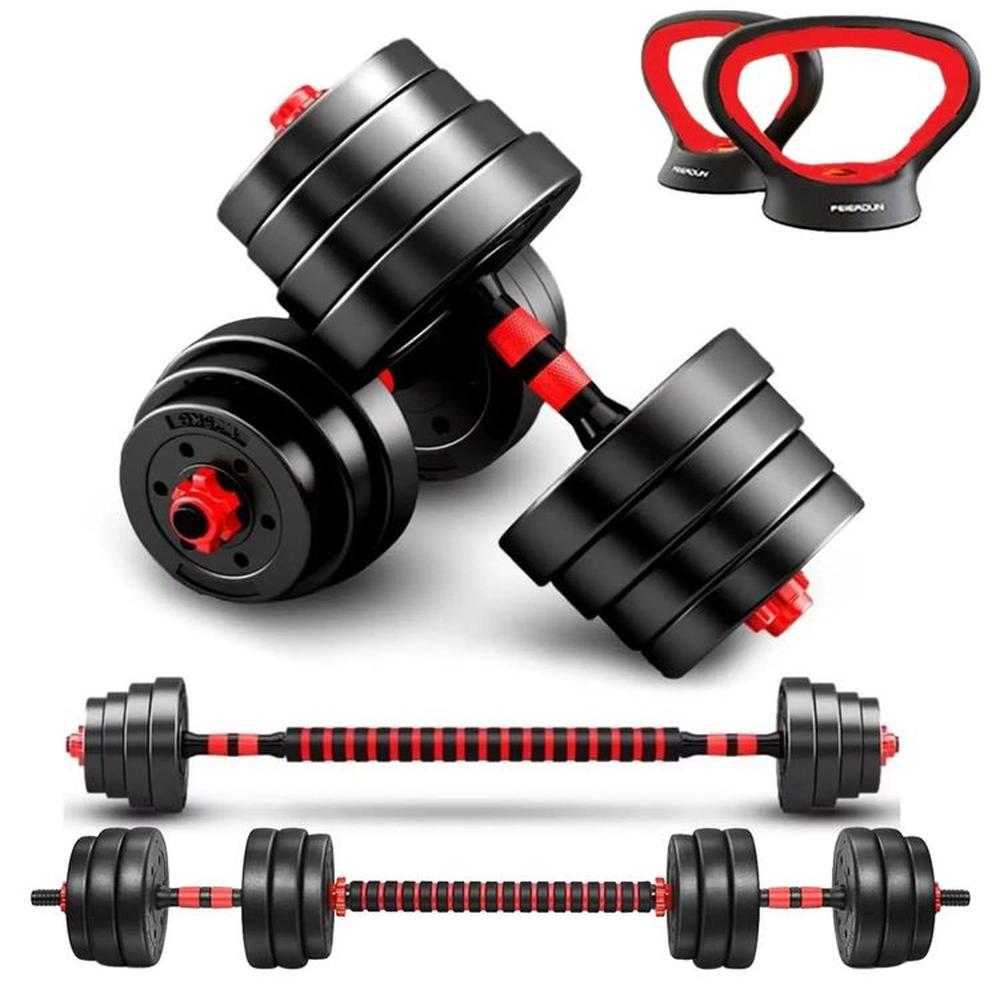 Mancuernas Set de 20 Kg Convertibles + Barra + Asas