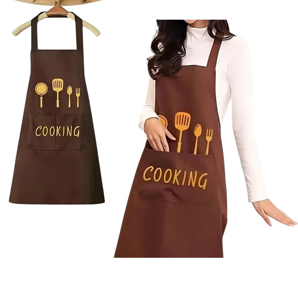 Mandil Delantal de Cocina con Bolsillos Marron