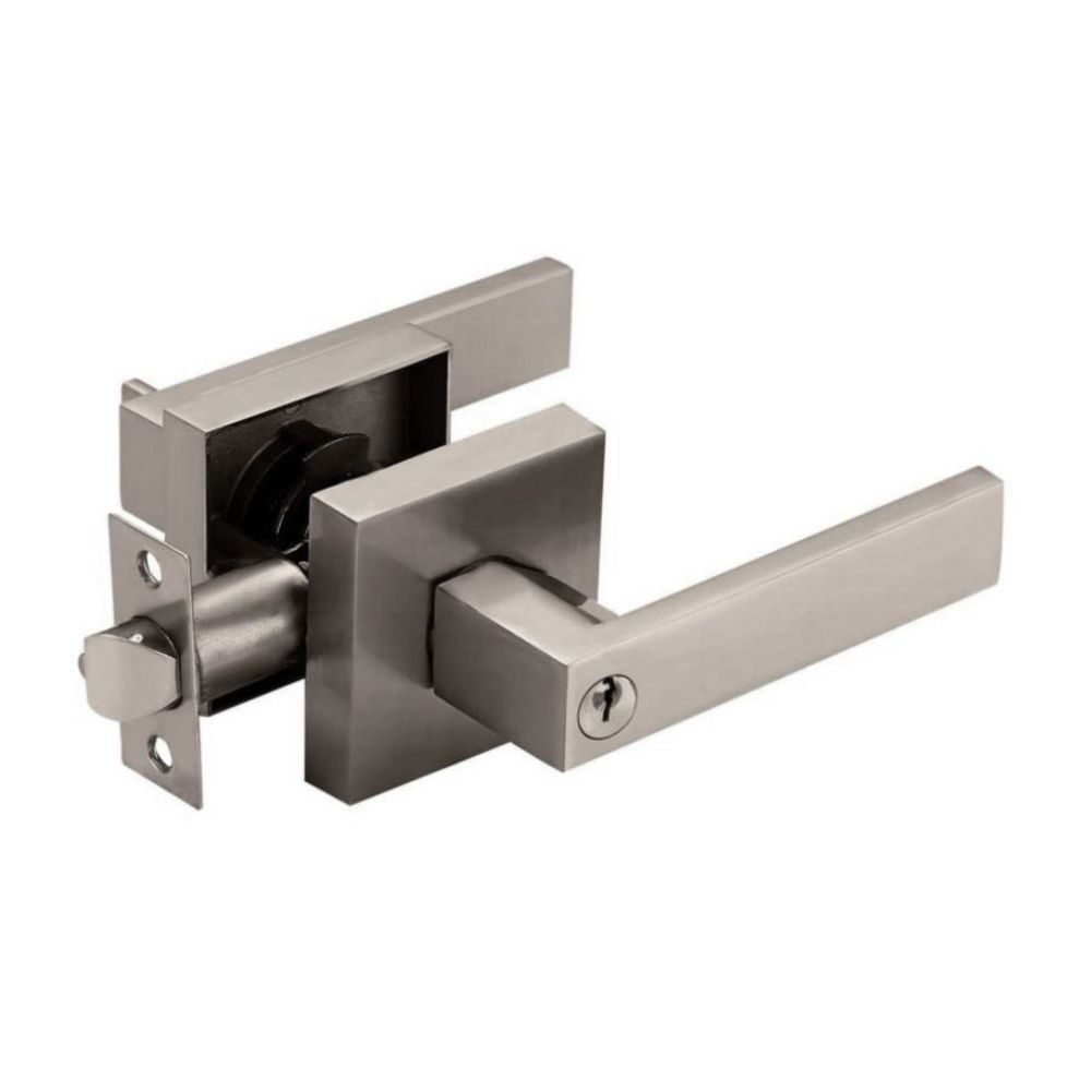 | Características | Manija modelo Chorrillos para dormitorio con acabado Inox Mate, Sistema reversible, Backset 60-70 mm, Llave de 5 pines |