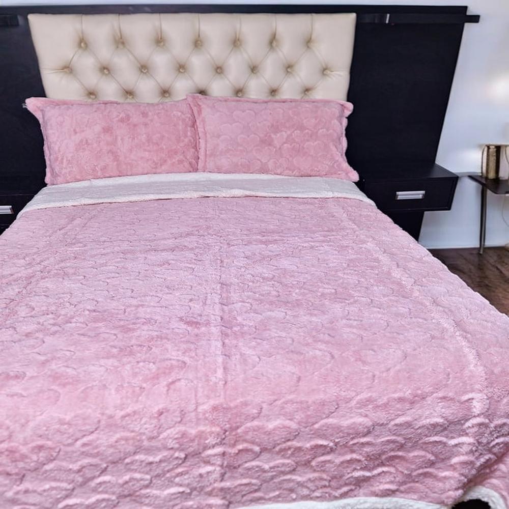 Manta Premiun Flannel con Reverso Sherpa ROSADO