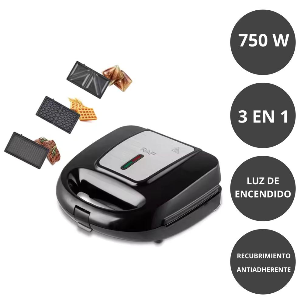 Máquina RAF R594R Waflera Sandwichera Grill 3 En 1 Negro