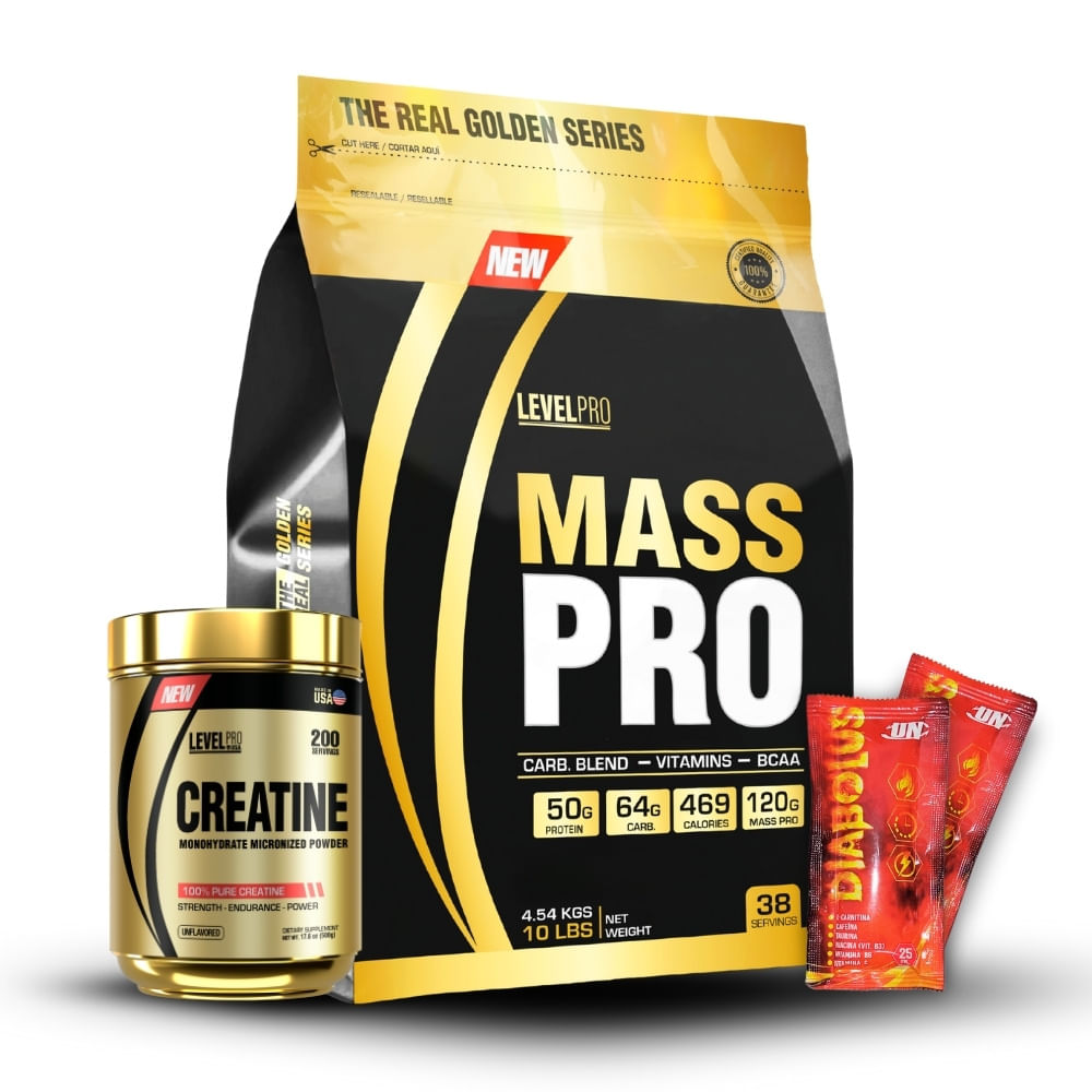 Mass Pro 10Lbs Rich Chocolate+Creatina Level Pro 500Gr+2 Diabolus