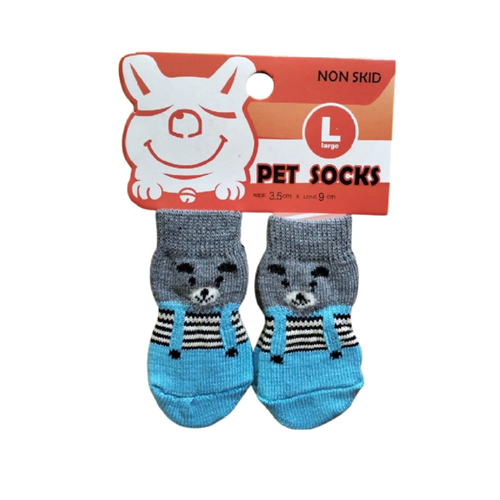 MEDIAS ANTIDESLIZANTES PARA MASCOTAS PERROS Y GATOS OSO CELESTE TALLA L
