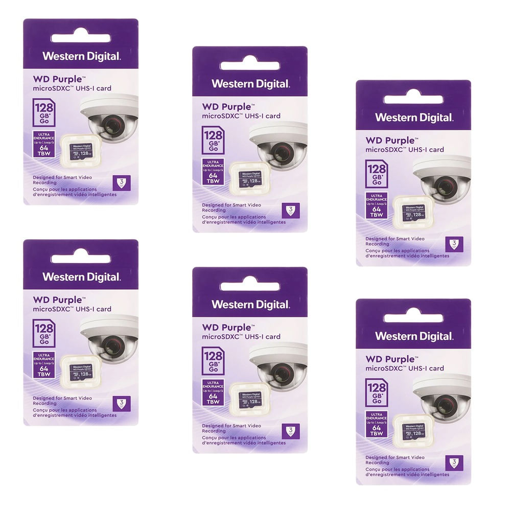 MEMORIA MICROSD WD PURPLE WESTERN DIGITAL 128GB KIT DE 6 UNIDADES
