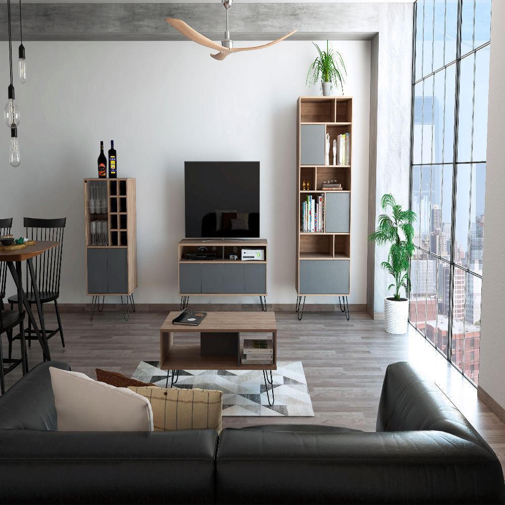 Mesa de TV 55" + Biblioteca + Bar + Mesa Centro Vassel - Miel / Plomo