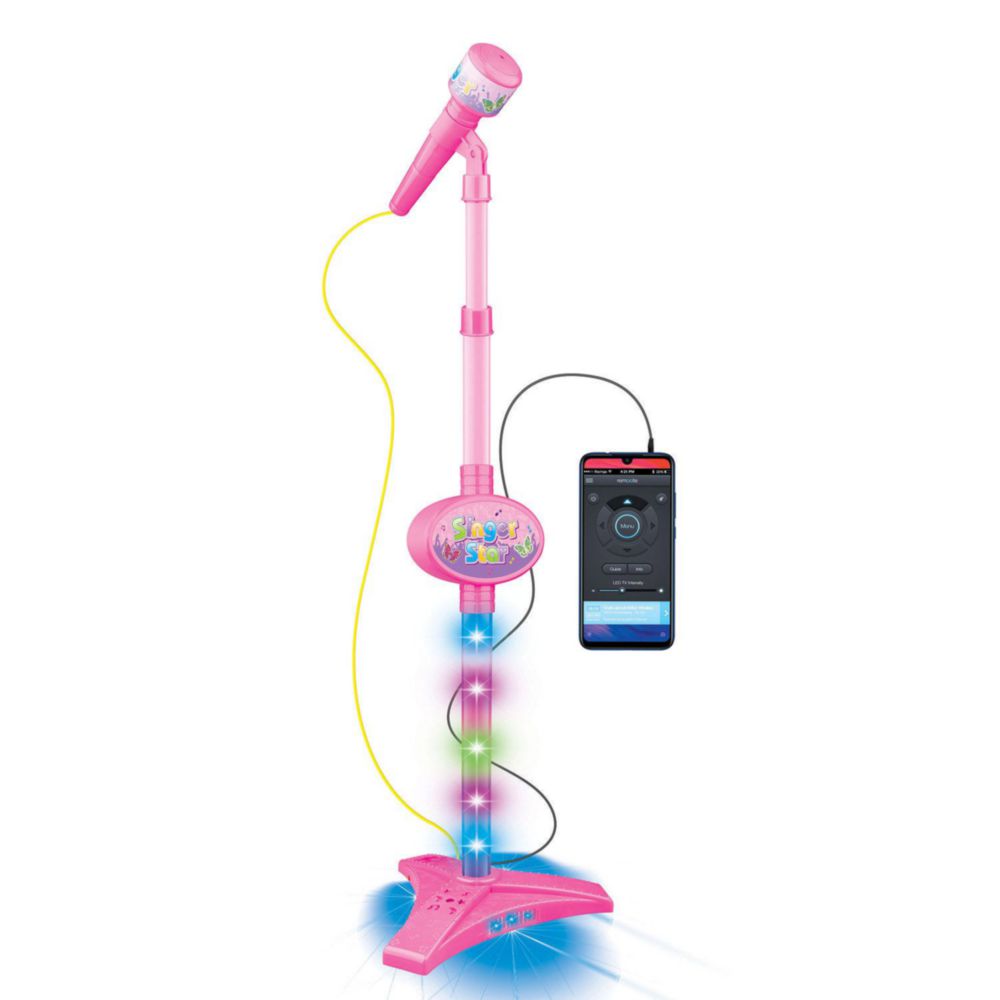 Micrófono De Pie Para Niños Sintonía Rosado Con Luces Y Conexión Mp3