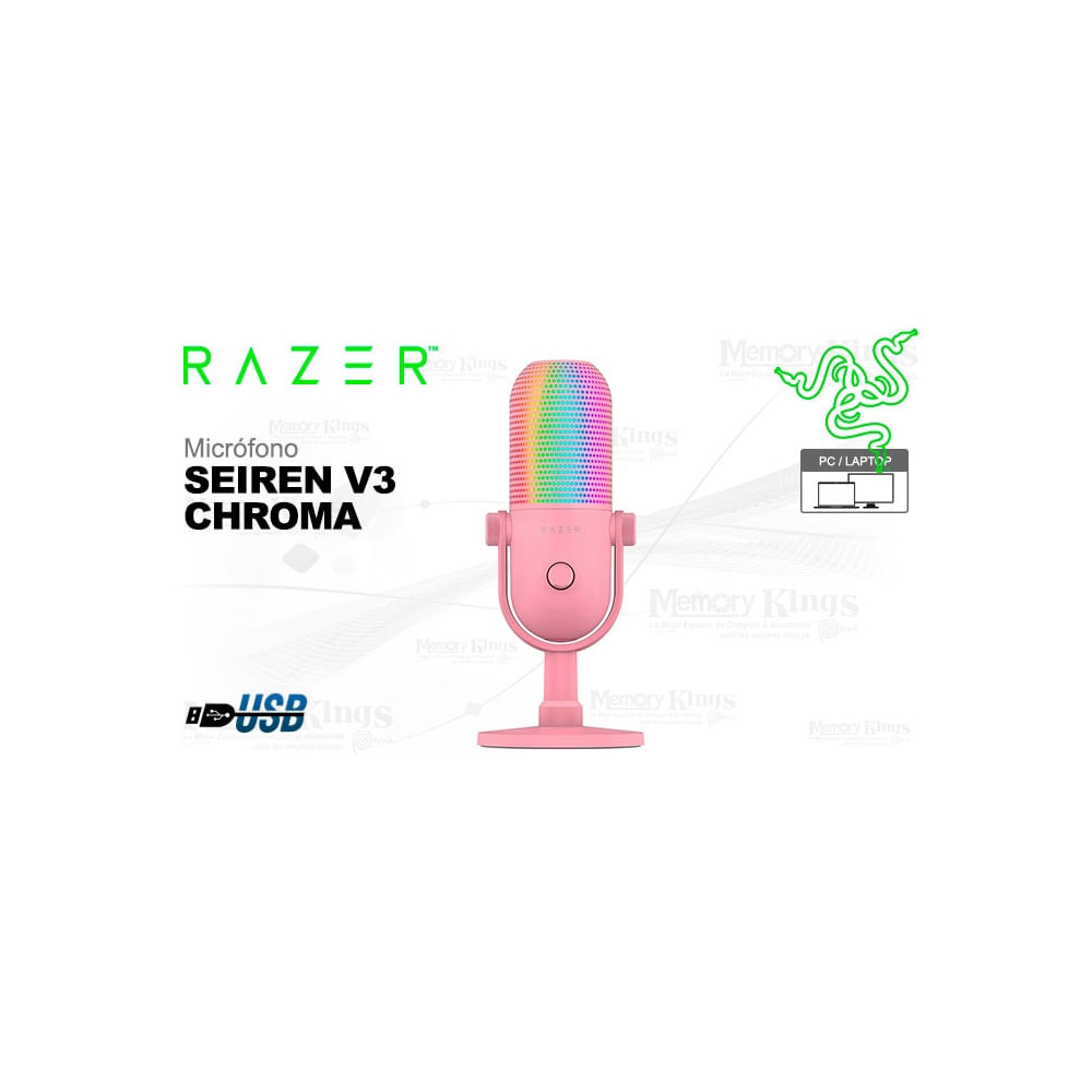 Micrófono Razer Seiren V3 Chroma USB Supercardioide con Sensor Touch y Silencio en Quartz