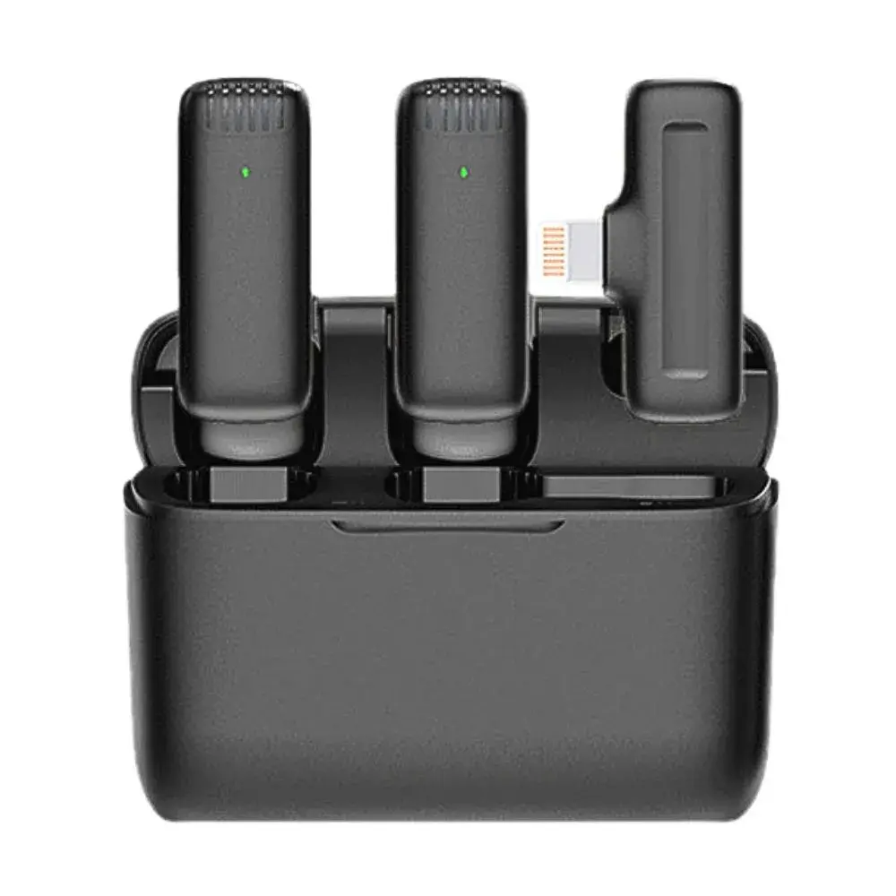 Micrófono Solapero Inalámbrico Doble Lightning J13-IP Estuche de Carga