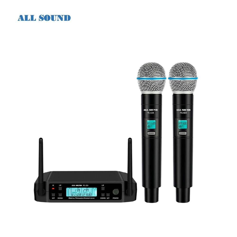 MICROFONOS DE MANO INALAMBRICO UHF DUAL ALL SOUND PG-XD4 CON MALETIN DE ALUMINIO