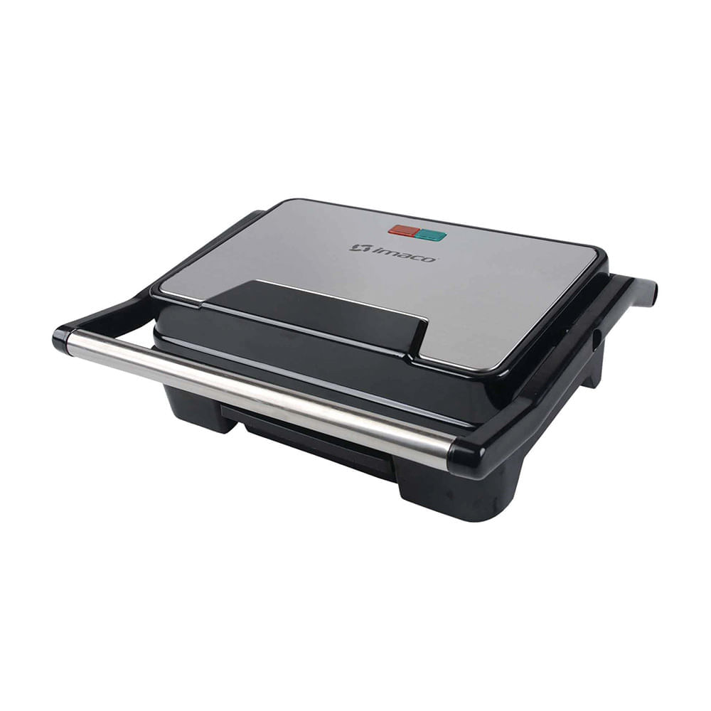 | Características | Mini grill sandwichero hecho de acero en su totalidad. Cuenta con placas ranuradas de gran superficie con recubrimiento antiadherente, luces piloto, se apaga cuando alcanza la temperatura deseada, Asa termo-aislante de calor, fácil almacenamiento, bandeja coletora de grasa, multifuncional para preparar sanguches, carnes, embutidos, etc. Voltaje: 220 - 240 V - 50 - 60 Hz |