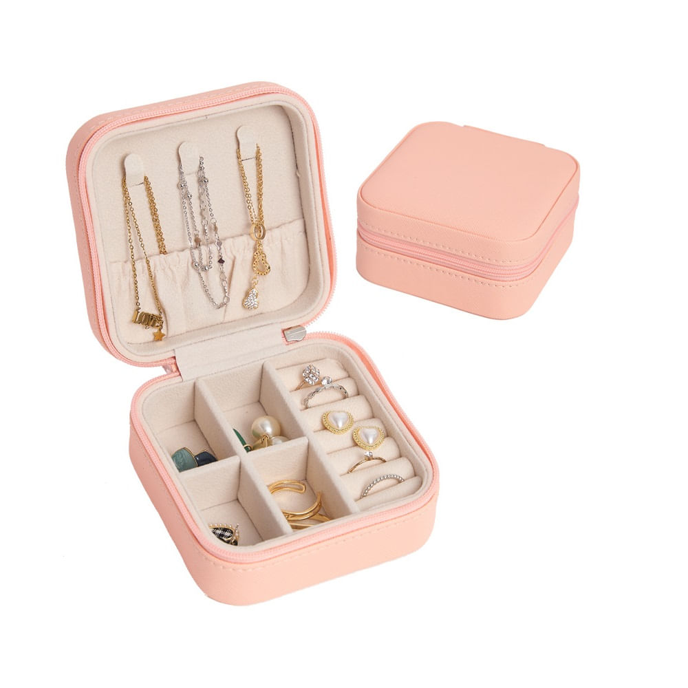 Mini Joyero Portátil con Cierre Organizador Rosa