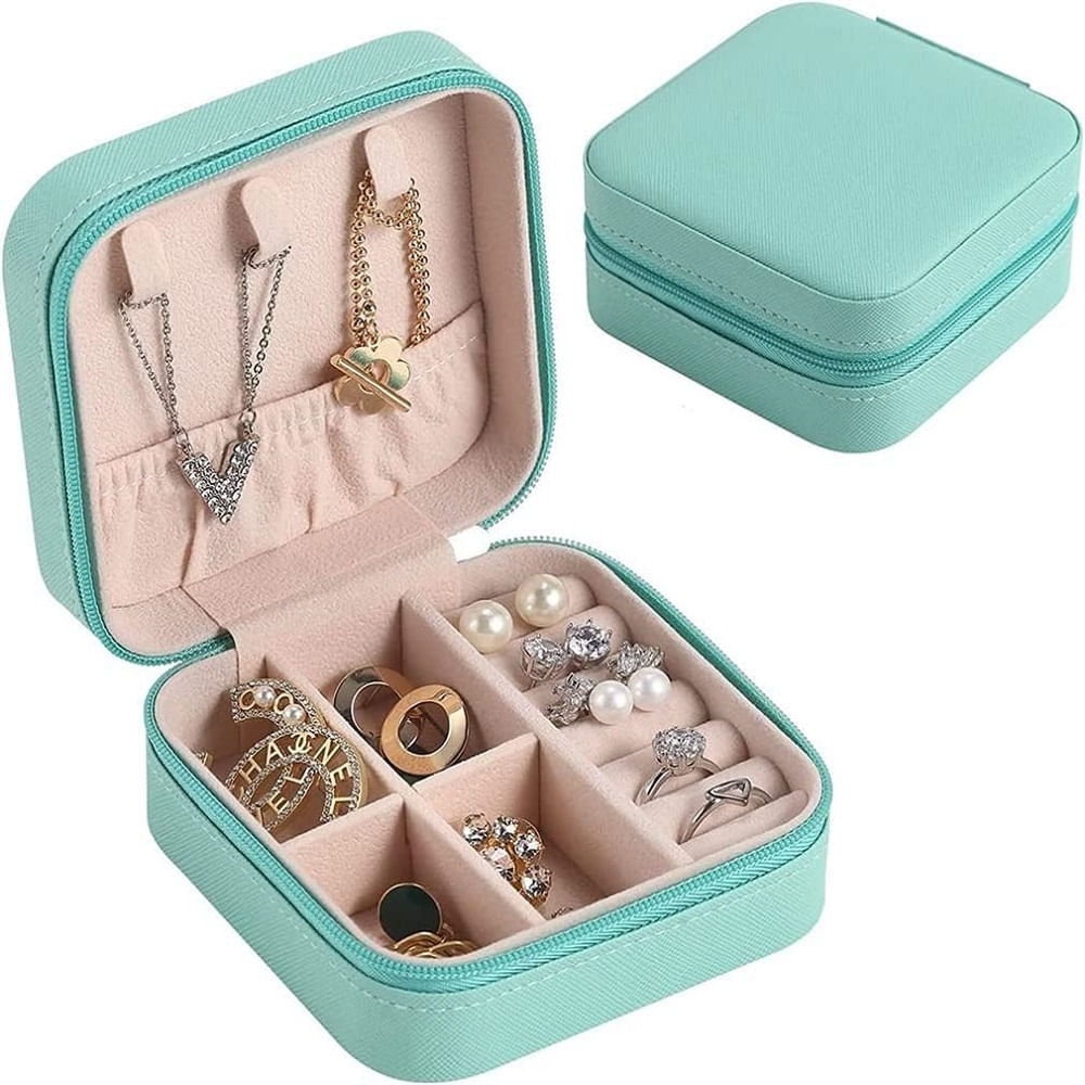 Mini Joyero Portátil con Cierre Organizador Turquesa