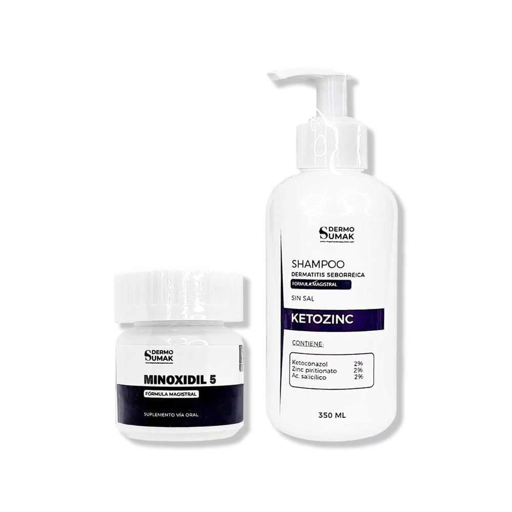 Minoxidil 5mg Caps 60 + Shampoo Sin Sal Ketozinc (Cabello Graso) 350ml
