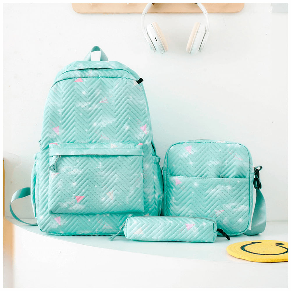Mochila Kawaii 3 Piezas Porta Laptop 15,6" Verde BP1