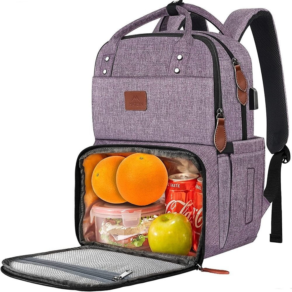 Mochila Térmica MATEIN Clásico Lonchera Portalaptop 15.6 Estudios Viajes Trabajo Morado
