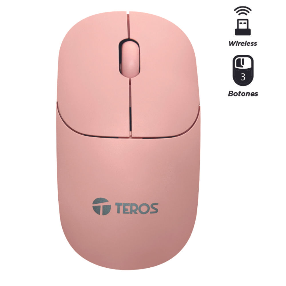 MOUSE ÓPTICO INALÁMBRICO TEROS TE-1218S, 1000 DPI, RECEPTOR USB, 3 BOTONES ROSA