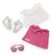 | Incluye | Valentina usa una falda con lazo rosa, un top con volados, ropa interior, lindos botines y lentes de sol de color rosa brillante para darle un toque extra. |