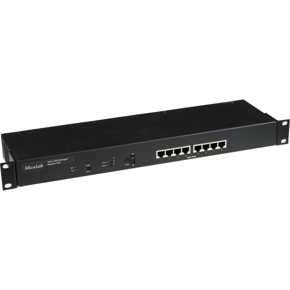 MuxLab 500172 Repetidor Activo VGA Gestionado - Transmisión de VGA y Audio Estéreo, 8 Puertos de Sal