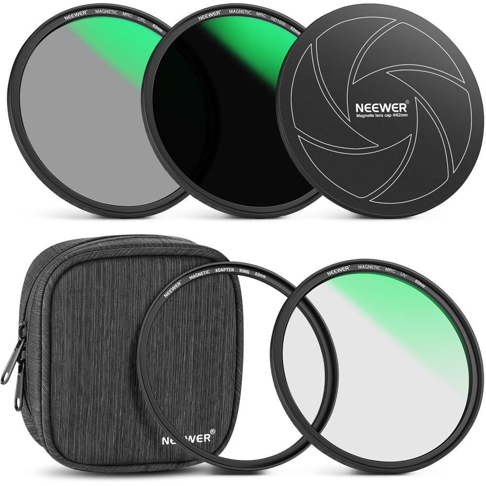 Neewer Kit de Filtros de Lente Magnéticos 5 en 1 (62mm) - CPL, MCUV & ND1000, Incluye Anillo Adaptad