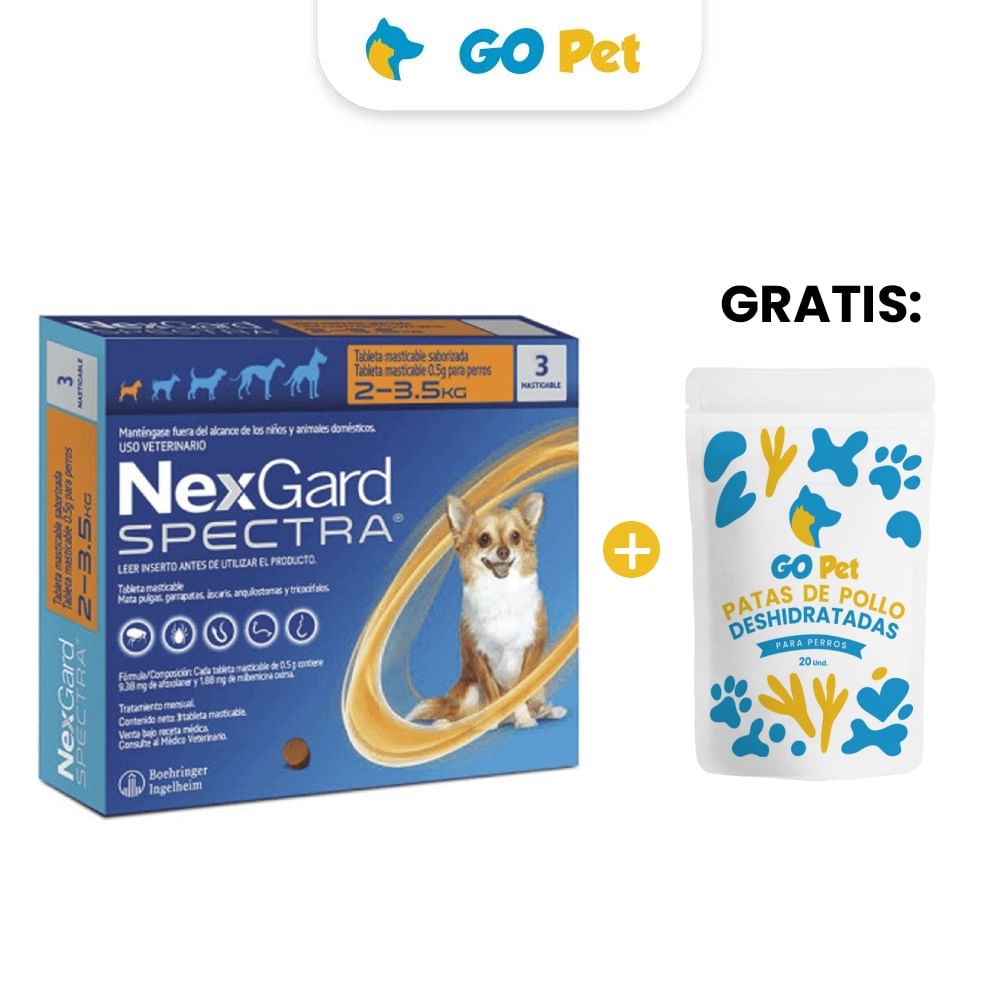 Nexgard Spectra XS x 3 Tabletas 2 a 3.5 Kg y GRATIS Patas de pollo deshidratadas x 20 und