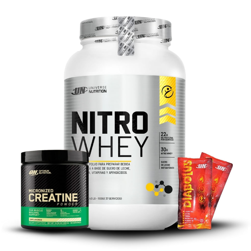 Nitro Whey 1.1Kg Cookies And Cream+Creatina Optimun Nutrition 300Gr+2 Diabolus