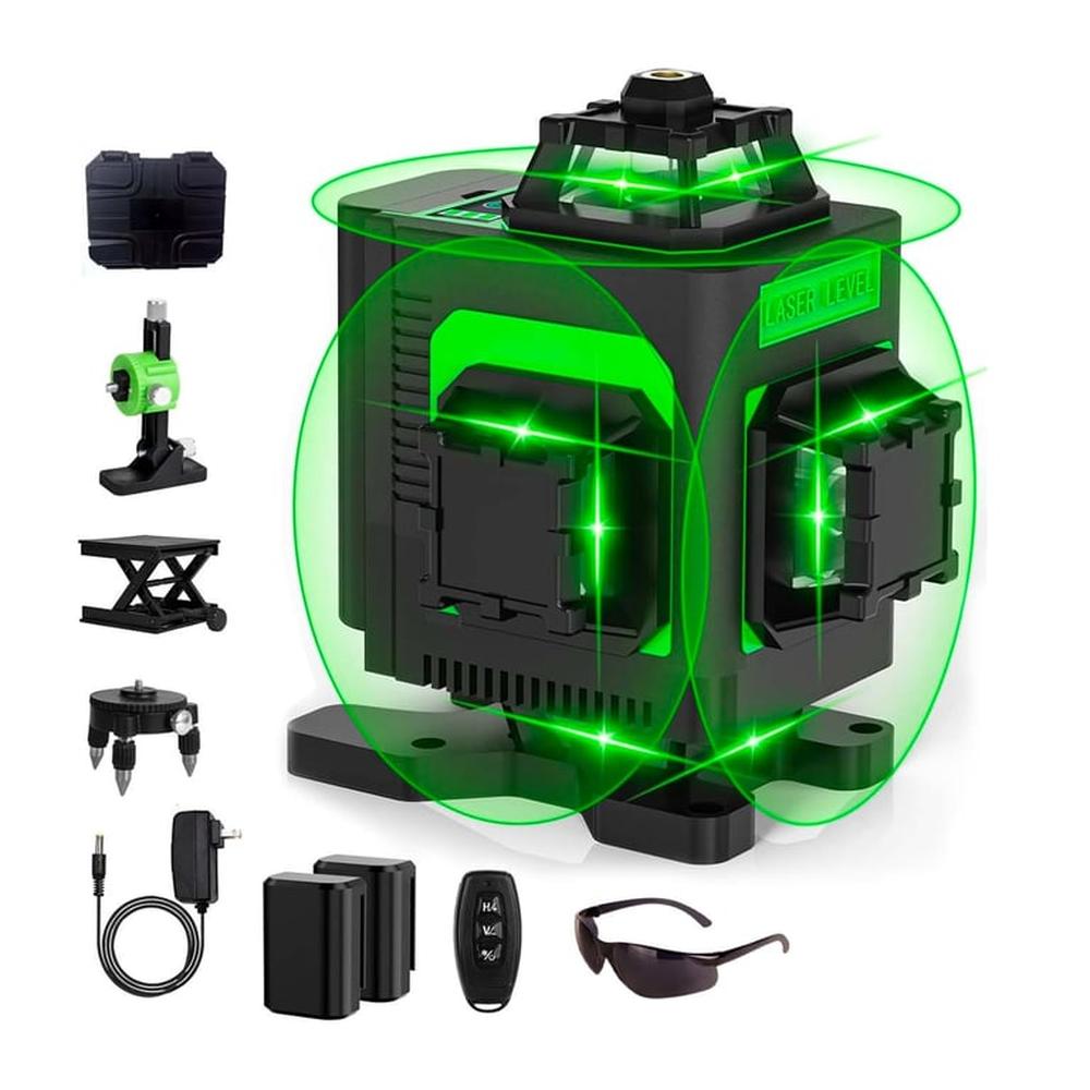 Nivel Láser 4D 16 Líneas Verde Multiuso Lente 2Baterías