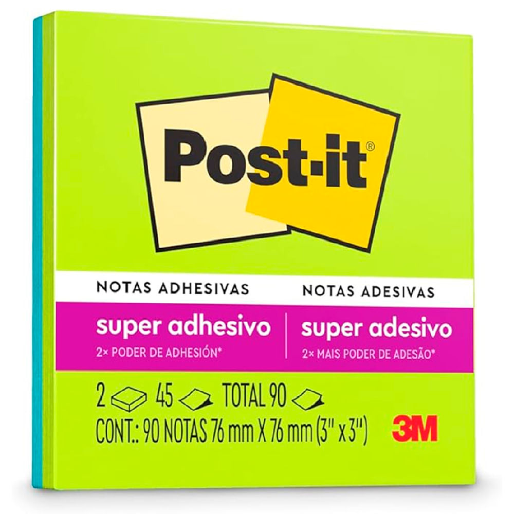 Notas Adhesivas POST-IT Super Sticky 3x3 Pulgadas 90 Hojas