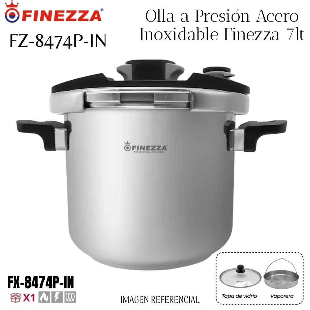 OLLA A PRESIÓN ACERO INOXIDABLE FINEZZA DE 7LT. FZ-847AP-IN