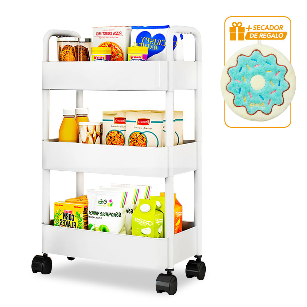 Organizador con Ruedas 3 Niv BL JK3 Y Toalla de Mano SM6 de Regalo