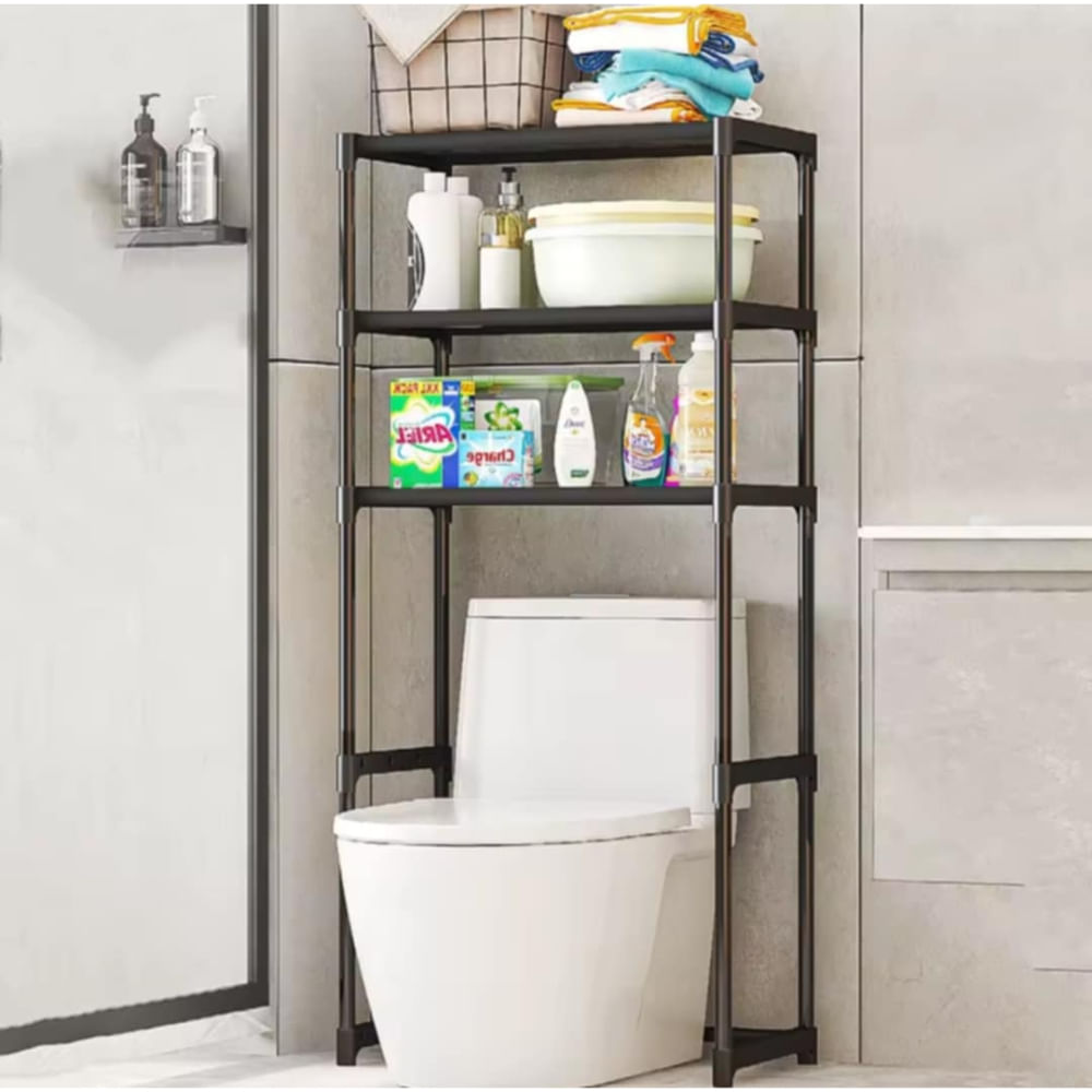 Organizador de Baño Multiusos 3 Niveles Resistente Estante Toilet Rack Negro