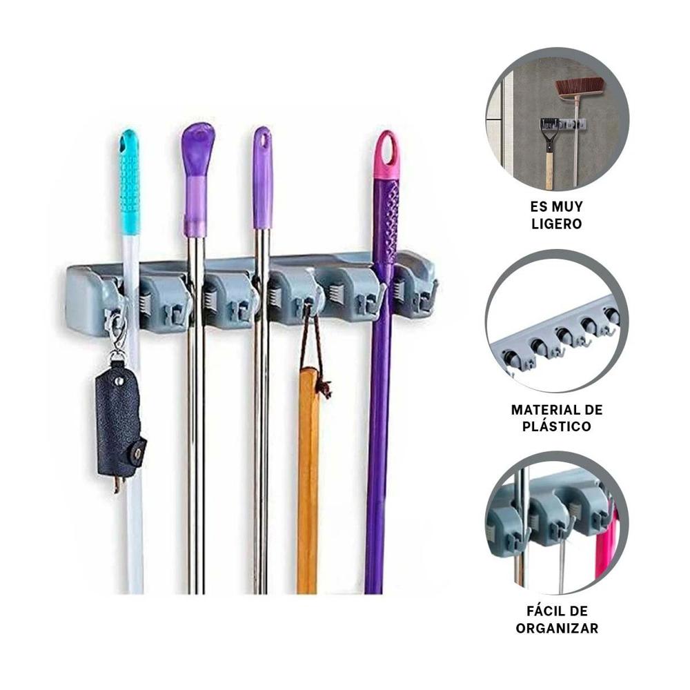 Organizador Domestico de Escobas con 5 Espacios para Casa Plomo Y+Ligas Regalo