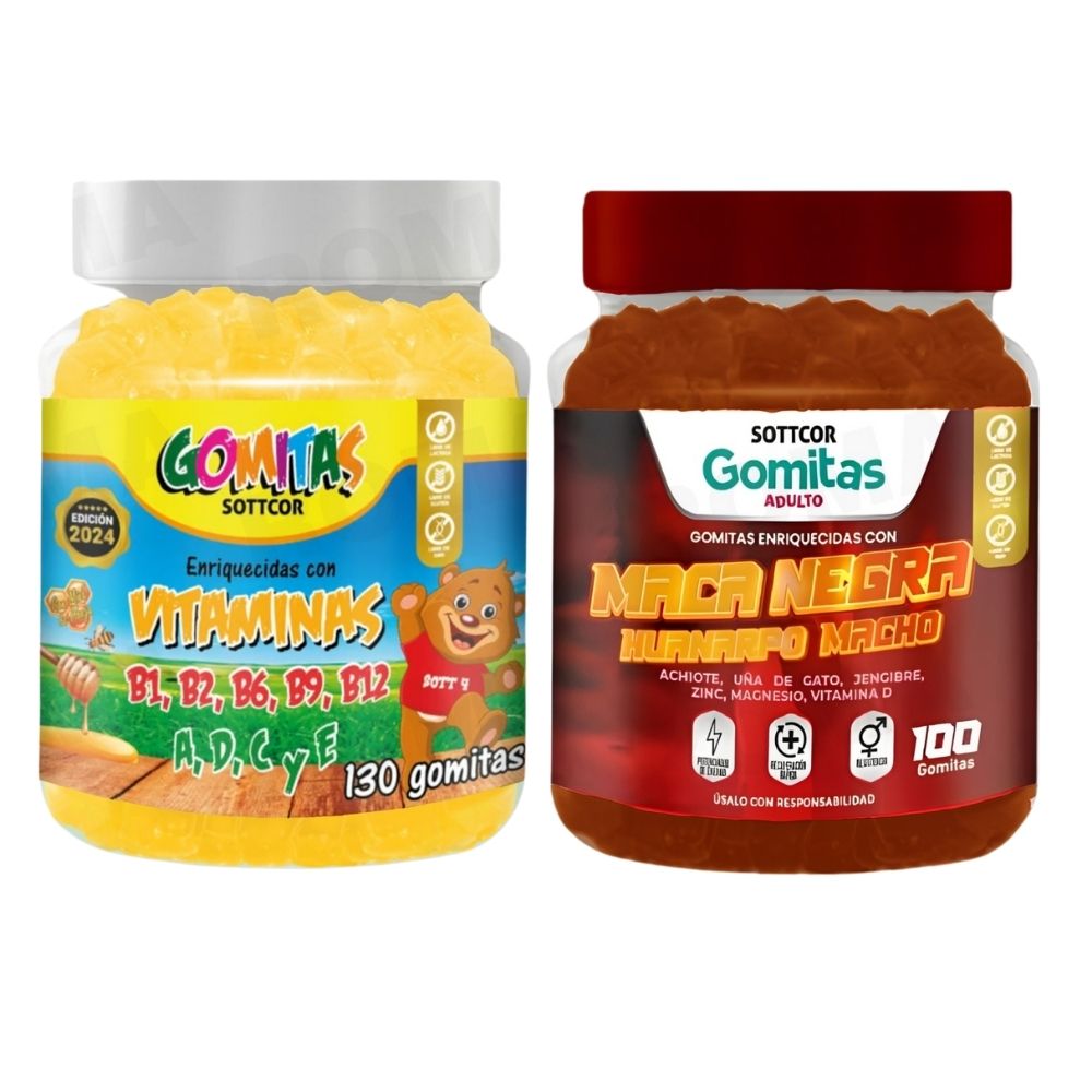 PACK 2 GOMITAS VITAMINAS PARA NIÑOS + GOMITAS MACA NEGRA 100 UND