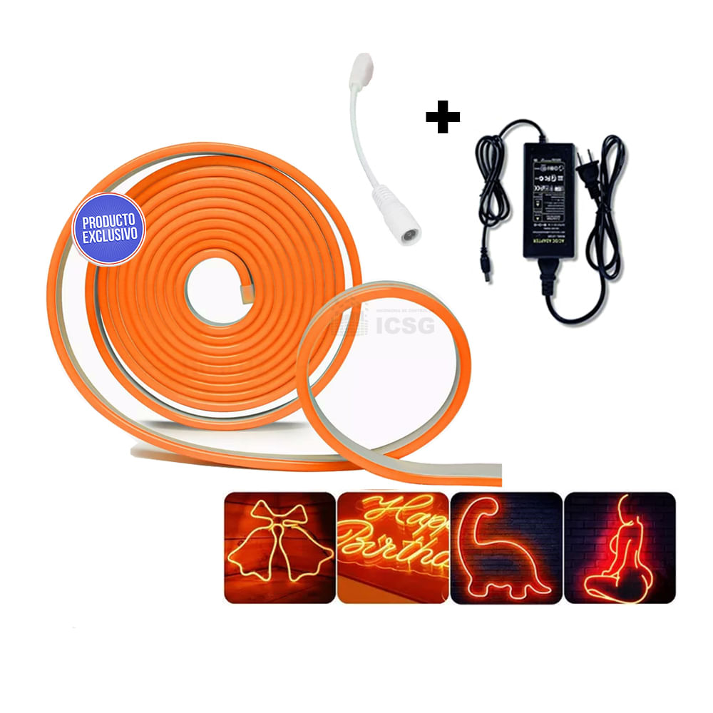 Pack Cinta Led 5 metros 12v Anaranjado Neón más Transformador