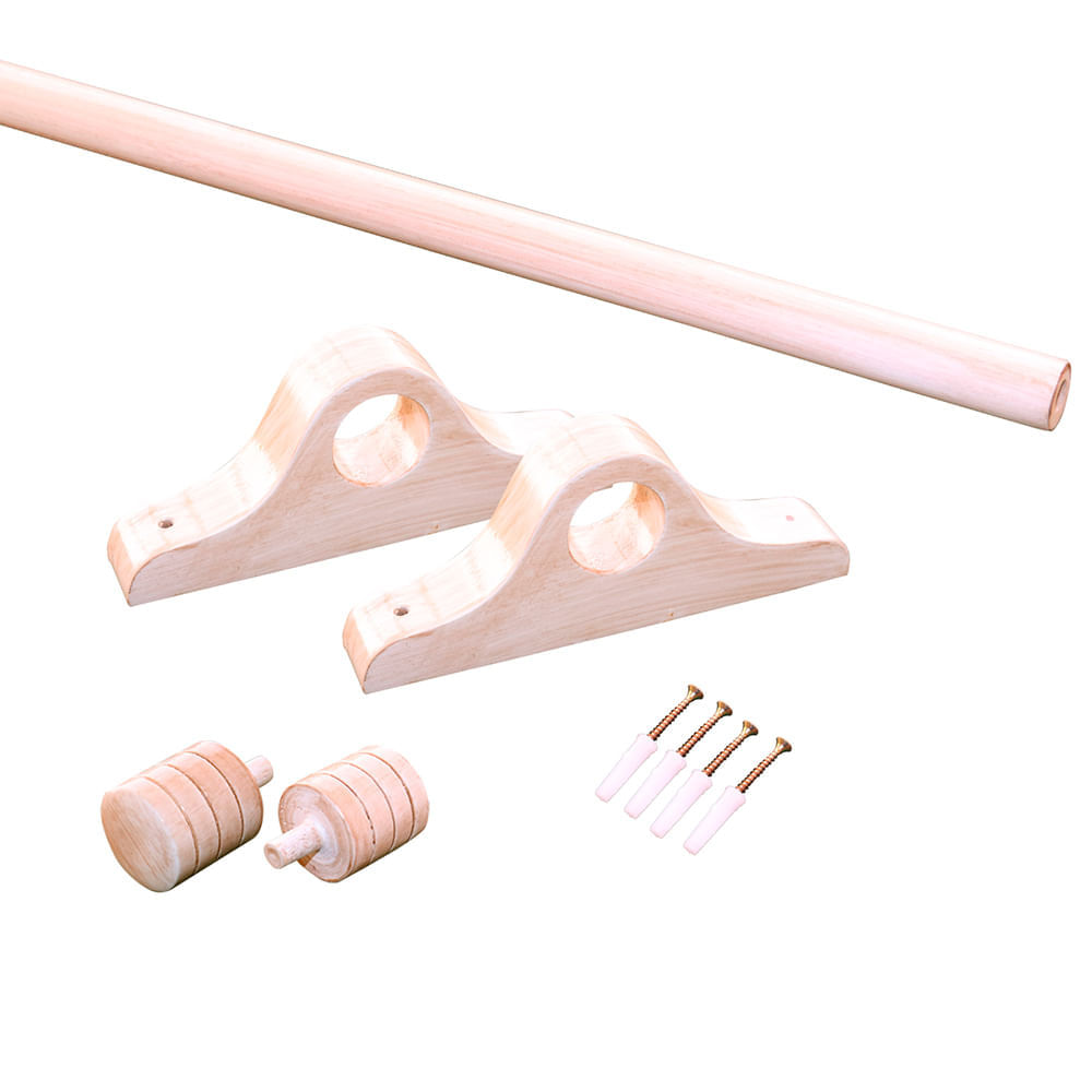 | Características | Pack cortinero que comprende Barra de madera coabilla que sirve como sujetador transversal de las cortinas, en acabado liso levemente texturizado y forma tubular, diseño clásico y convencional. Viene con perforación interna de 1.5 cm a los extremos para colocar terminales o uniones de barra en caso así lo requiera. Soportes y terminales del mismo material que la barra. |