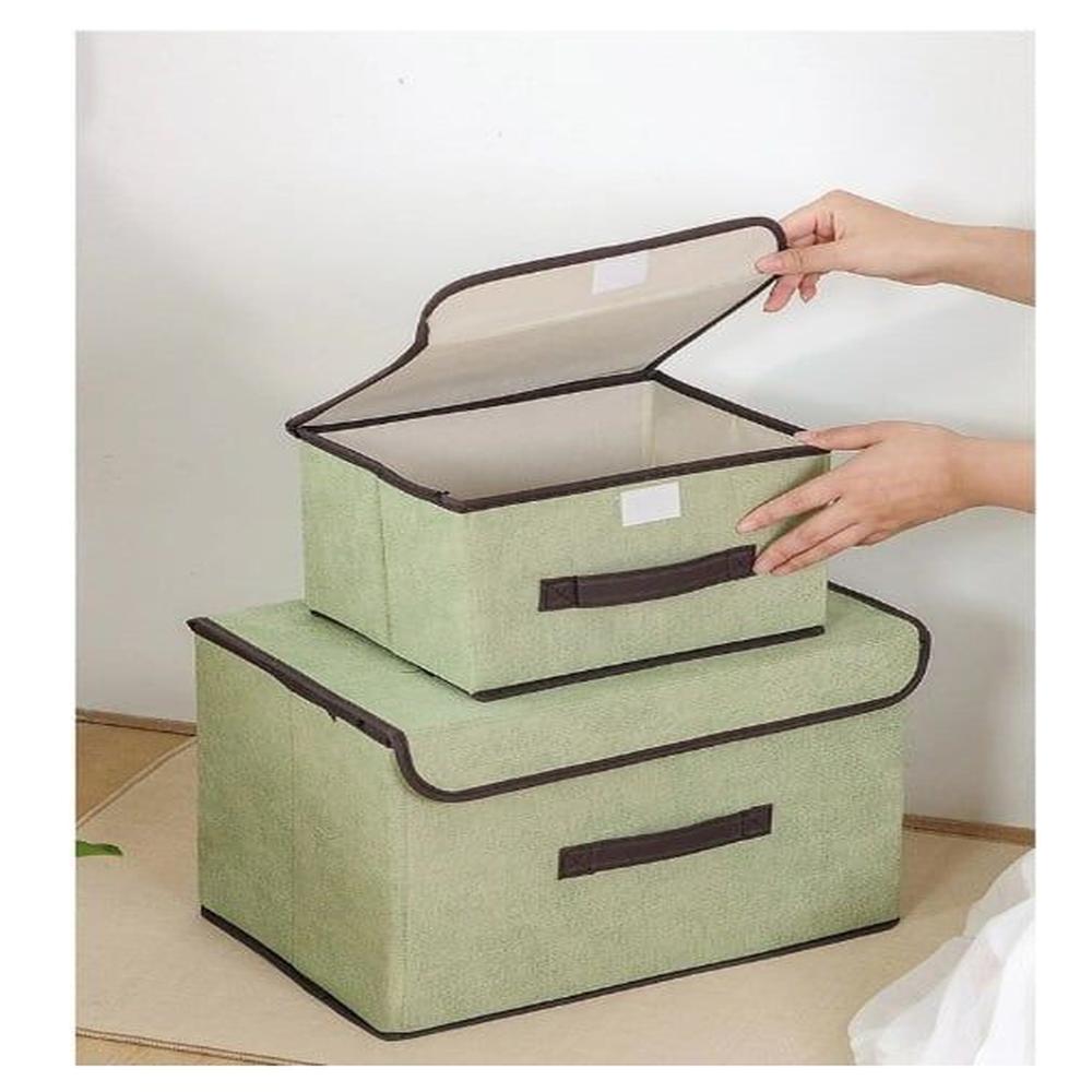 Pack de 2 Cajas de Almacenamiento de Tela Plegable con Tapa
