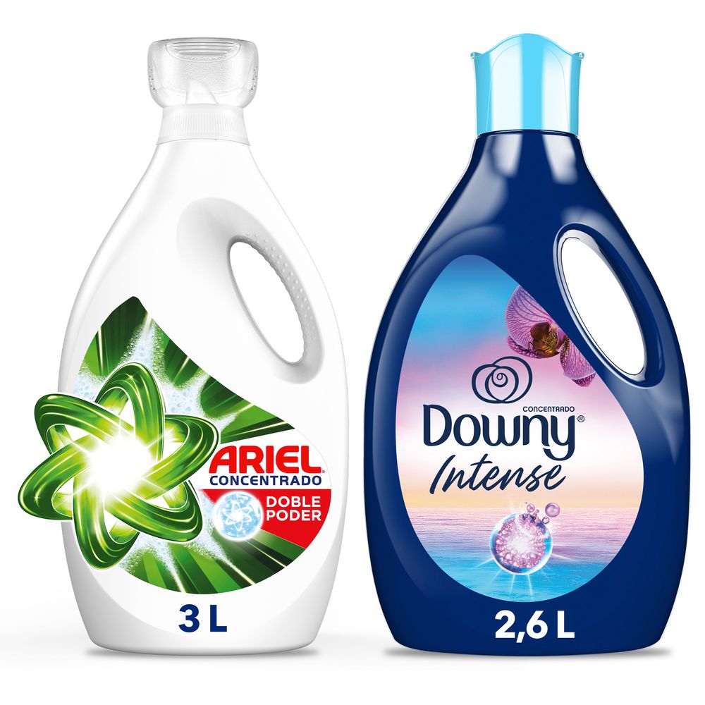 Pack Detergente líquido ARIEL Concentrado Galonera 3000Ml + Suavizante DOWNY Amanecer Botella 2600ml
