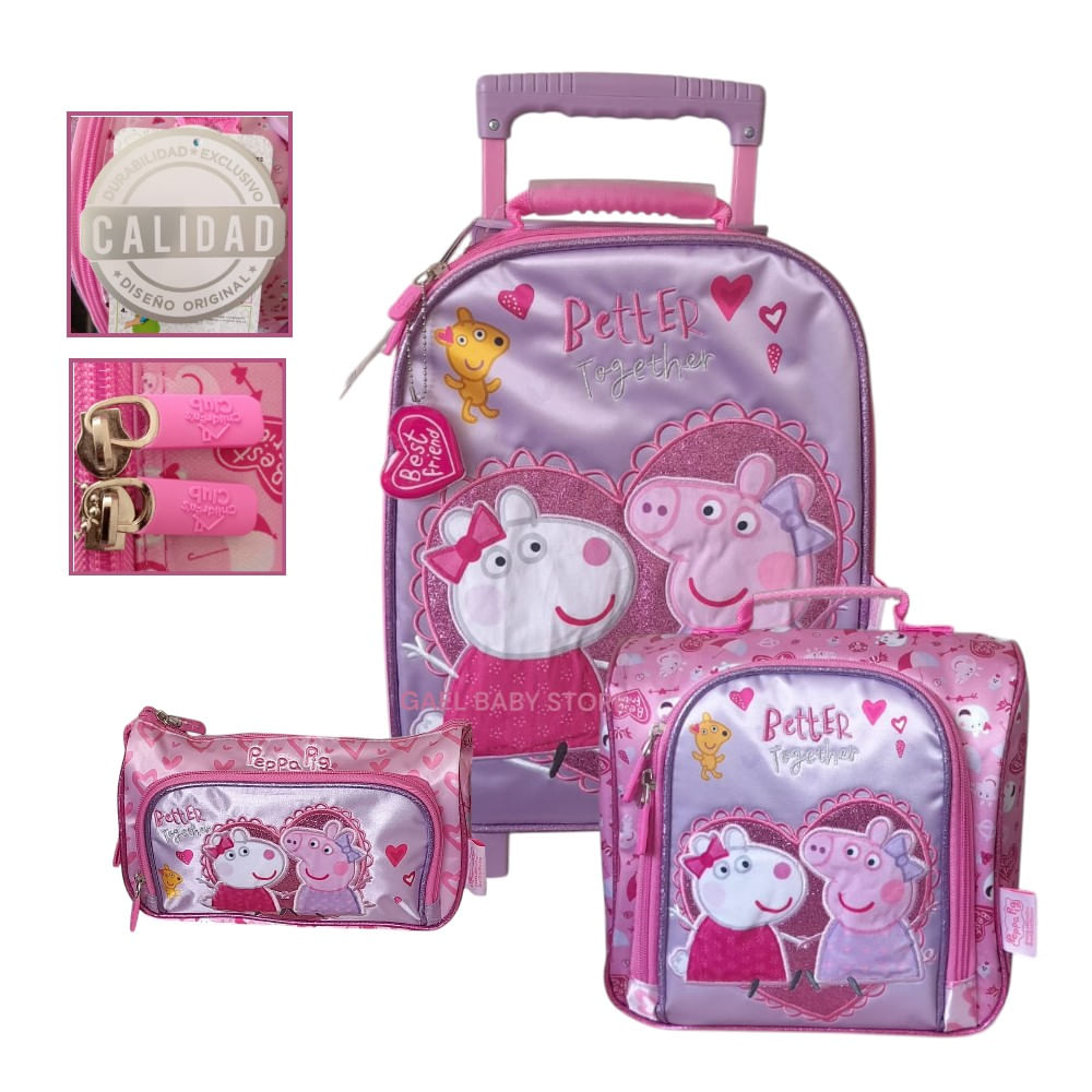 Pack Escolar A4 Maleta, Lonchera, Cartuchera Peppa Pig y Susy Sheep